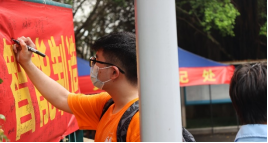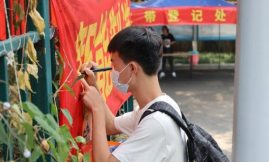 新生在学院的签名墙上留下了来到新校园的第一个签名,留下自己对未来的憧憬。