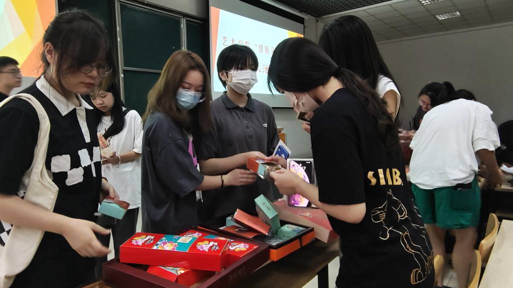 学院老师为新生同学准备了精美的盲盒礼物,并与同学们共同diy灯笼、寄明信片、博饼互猜……同学们热情空前高涨。在制作diy礼物期间,老师还对动手能力强、工作效率高的同学进行奖励,进一步提升了同学们的积极性,提升工作效率。大家在欢声笑语中完成了礼物的制作。