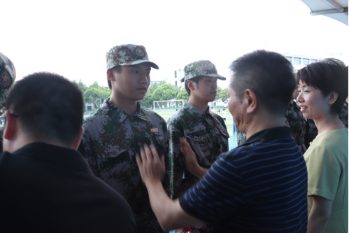 典礼上还举行了新生佩戴校徽仪式,主席台上领导和老师为新生代表佩戴校徽,台下的全体新生也将校徽佩戴在胸前,希望2022级全体新生以这枚徽章为荣,努力为学校争光添彩。随后还进行了新生班级授旗仪式,12名新生班级班长庄严地接过班旗,感受着归属感和责任感的传递。在学院党委书记陈欣宣读完批复后,陈群为退役大学生士兵青年攻坚突击队数字信息工程学院分队授旗,突击队将在国防教育、军事训练、校园文化建设、应急保障等工作中发挥应有用。