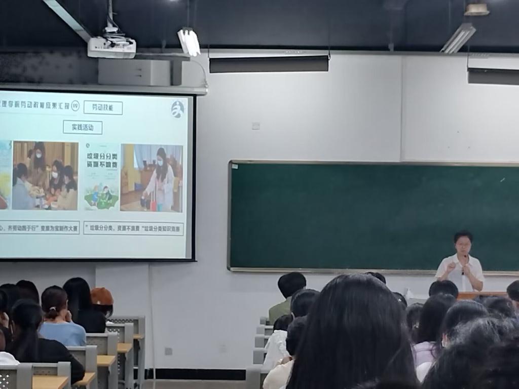 在此次专题活动过程中,黄益群为大家解释“劳动精神”的内涵,生动讲述劳动模范们的生平事迹,深刻展现了劳动创造价值,劳动成就人生,人生因劳动而绚丽多彩。她还着重强调了同学们在疫情期间的注意事项,提醒同学们应结合疫情防控做好个人卫生,积极打扫宿舍以及教室卫生,以干净整洁的环境达到多病共防的效果,共同为校园防疫贡献自己的微薄之力。