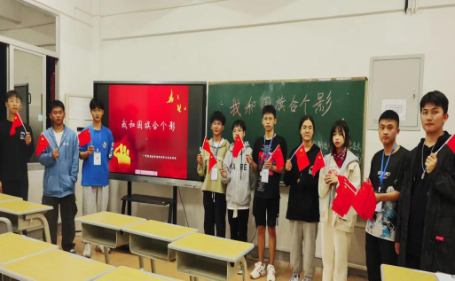 活动中,主持人讲述了国旗的故事、领学了《中华人民共和国国旗法》,通过视频介绍了国旗制作流程,希望全体同学自觉维护国旗的尊严,规范国旗的使用,增强国家观念,弘扬爱国主义精神。伴着《我和我的祖国》的歌声,各班级学生代表用一张张和国旗的合影,表达了对伟大祖国的热爱和祝福。