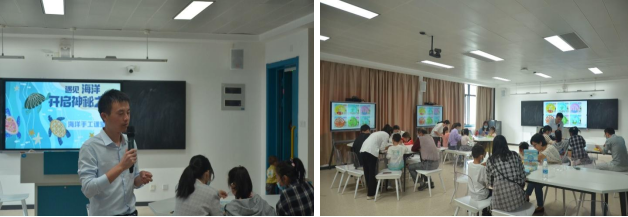 为了让孩子们更深刻地了解海洋之美,树立保护海洋的意识。参观完标本馆后,小学教育学院科学教师卓文豪带领着家长与孩子们开展了亲子手工活动“海洋贝壳画”的制作。