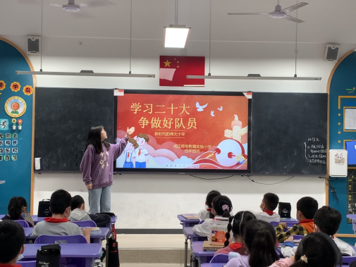 11月22日下午,小学教育学院组织28名入党积极分子走进闽江师专附属实验小学的班会课,向小学生们宣讲党的二十大精神。