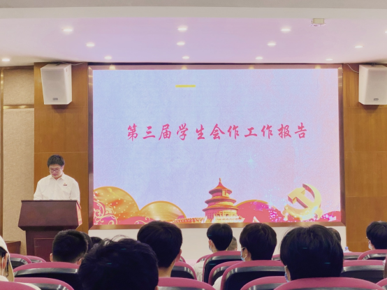 杨杰代表上一届学生委员会作第三届学生会工作报告。