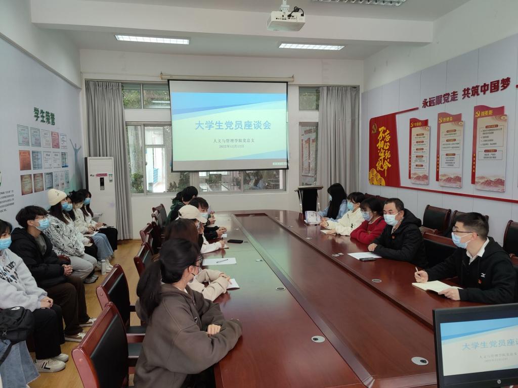 为进一步贯彻党中央优化疫情防控工作的要求,深化巩固学校疫情防控成果,进一步抓好常态化疫情防控工作,提高学生党员的思想政治素养。12月12日上午,人文与管理学院于仓山校区三楼会议室举办大学生党员座谈会,院党总支书记林朝阳、院学生党支部书记叶懿蛟、学生党员和积极分子代表参加座谈会。