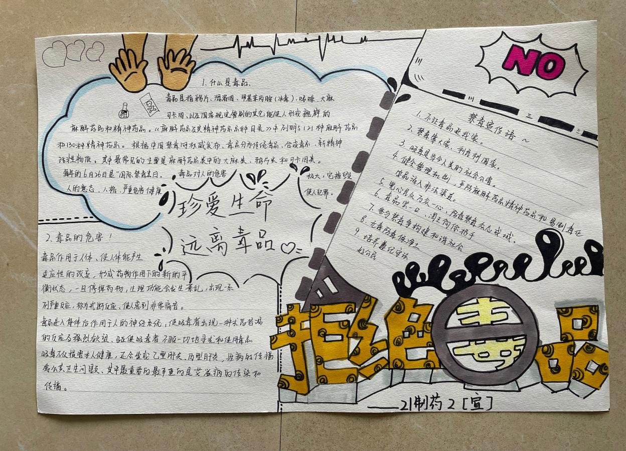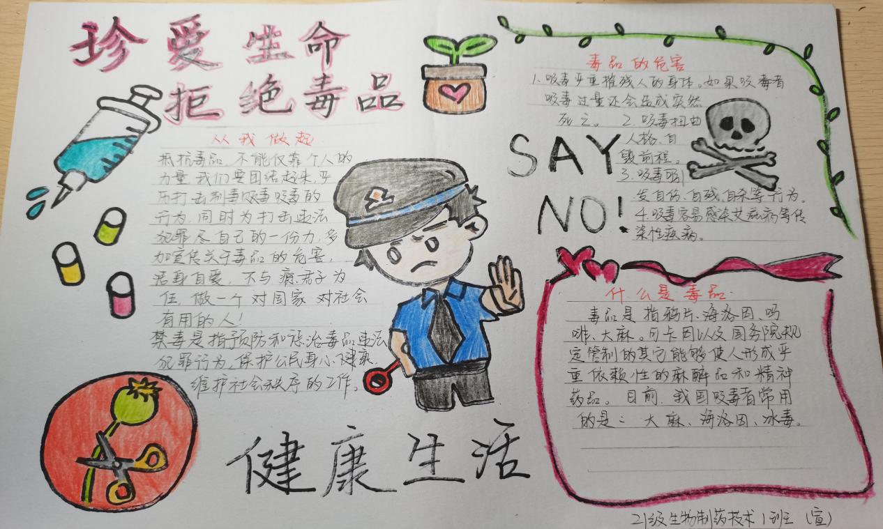 在活动中,同学们查阅了禁毒防毒相关资料,充分发挥主观能动性,围绕主题创作出许多优秀且有意义的手抄报作品。每一份作品都结合实际从毒品的类别、危害性、预防毒品等方面展开宣传,让同学们认清毒品的危害,懂得“珍惜生命,远离毒品”,培养禁毒意识,自觉与涉毒违法犯罪作斗争。同时,学院利用网站、宣传栏等传播平台对优秀作品进行展示,充分运用信息化载体扩大禁毒宣传的效应,营造了浓厚的宣传氛围,得到了师生们的认可。