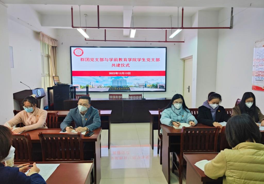在本次共建仪式上,学前教育学院学生党支部书记姚美妃围绕支部党员情况、支部活动开展、学生思政教育工作等方面介绍了支部工作开展情况,希望与机关群团党支部共建合作平台,进一步拓宽学生党员教育培养途径,不断提升党员思想政治素养,打造具有品牌特色的党建活动。群团党支部书记王海波指出,党的二十大报告指出当代中国青年生逢其时,施展才干的舞台无比广阔,实现梦想的前景无比光明。要把青年工作作为今后工作的重点,要用党的科学理论武装青年,用党的初心使命感召青年。同时他提及要从组织力、服务力、凝聚力上加强对青年党员的培养,结合共建党日活动、学习研讨会等形式,夯实学生党员培养基础。林锦芯表示,要以支部共建为契机,以青年党员培养为重点,本着“我为群众办实事”的服务初心,围绕交流座谈会、主题党日、专题党课等形式,依托代表性成果,形成支部结对共建的长效机制。