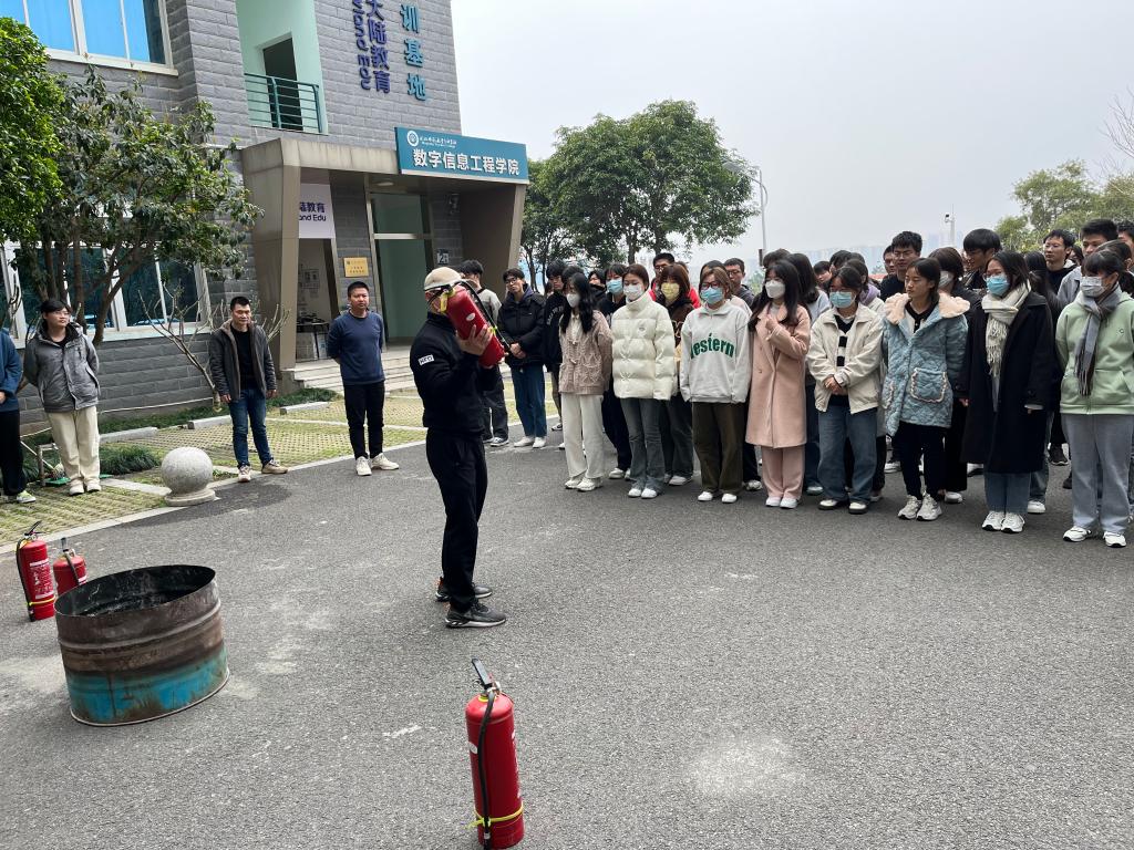 接着,后勤保卫处的安全人员现场示范讲解手提式干粉灭火器的使用方法及操作要领,并邀请在场师生进行实操练习。
