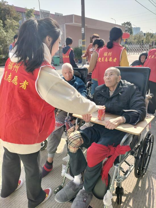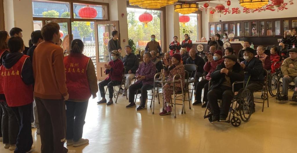 随后,志愿者们发挥专业特长,为老人们献上合唱《有福之州》《唱支山歌给党听》《歌唱祖国》《我和我的祖国》《学习雷锋好榜样》等经典歌曲,现场歌声、笑声、掌声不断,其乐融融。志愿者们还为老人们分发了小礼物并手写明信片,向老人们送上真挚的祝福。现场的老人也向志愿者们表示了感谢,并反复叮嘱志愿者们要好好学习,其关切之心令人动容。