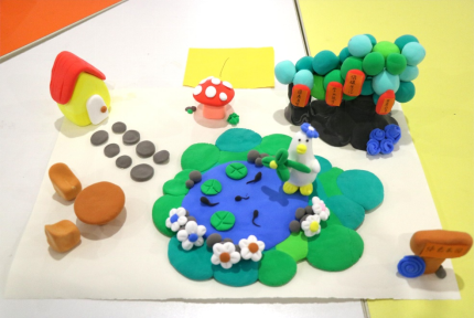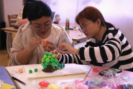 图1:参赛选手认真创作粘土手工作品