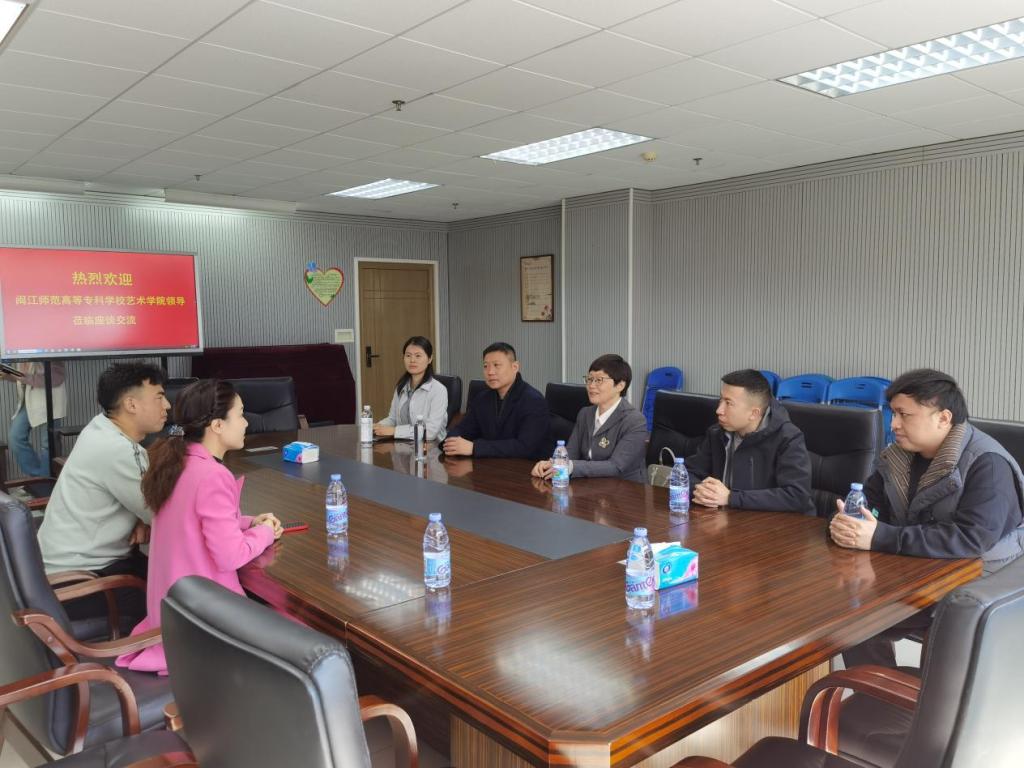随后,江柳青一行走访哈鼓邦流行音乐学校。座谈会上,负责人朱文郡详细介绍学校背景、课程设置、师资以及教学环境等基本情况。她肯定了我校办学水平与人才培养质量,并希望与艺术学院在专业建设、实践育人等方面开展合作交流。江柳青表示,希望今后双方能够深入合作,优势互补,在为毕业生提供更多高质量就业岗位的同时,也为促进地方产业发展培养输送更多优秀人才。