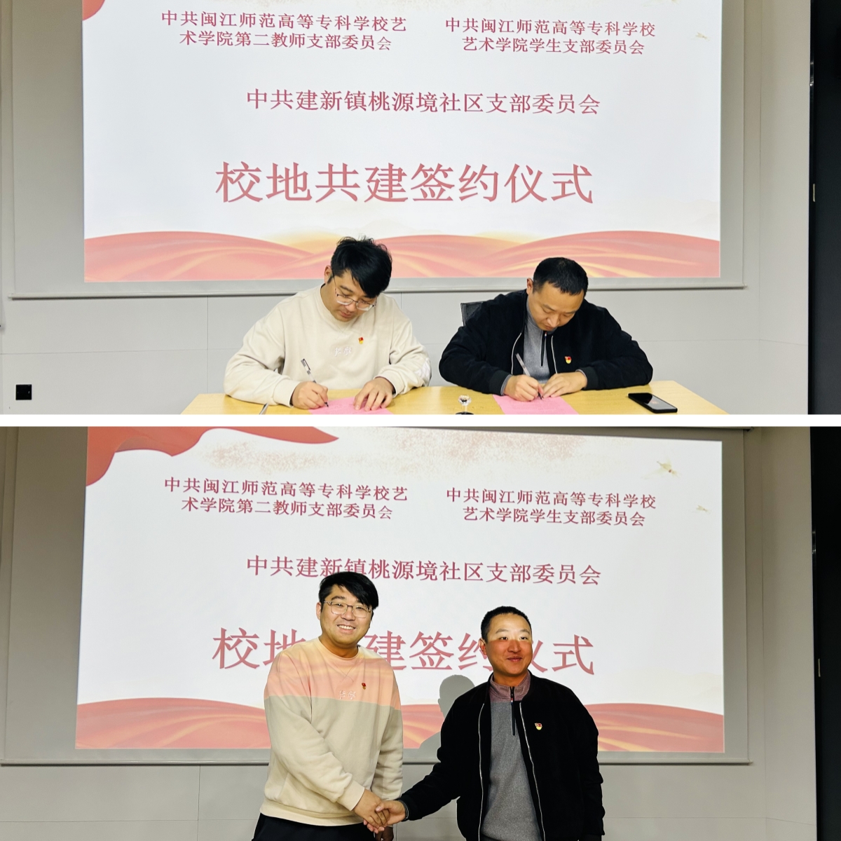 3月31日,艺术学院学生党支部和教师第二党支部与福州市仓山区建新镇桃园境社区党支部在仓山区建新镇桃园境社区举办了共建协议签订仪式。艺术学院党委青年委员、学生支部书记周宇航,艺术学院第二教师支部书记刘毅云与仓山区建新镇桃源境社区党支部书记、居委会主任杨青军及支部两委委员参加活动。