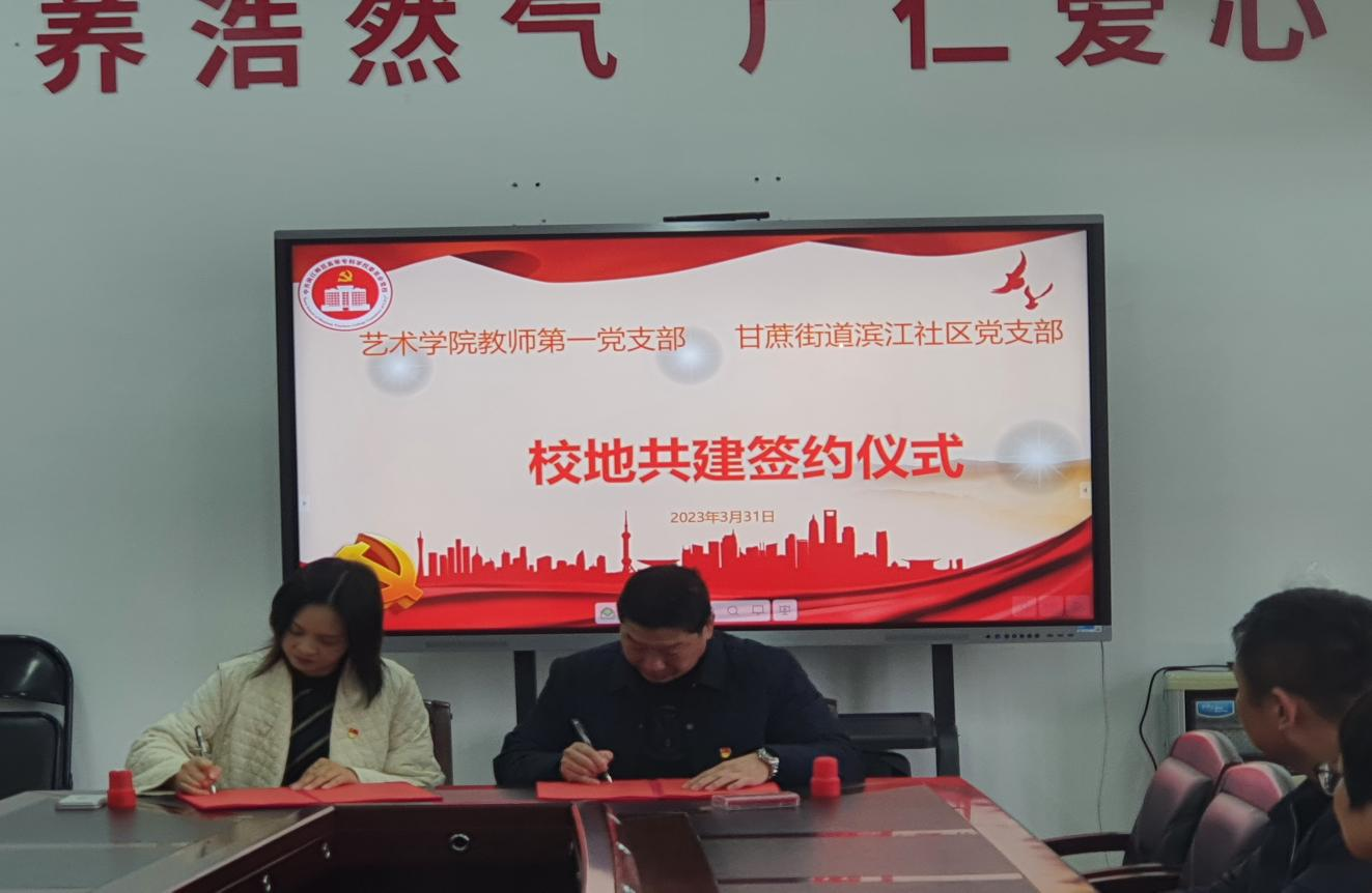 为深化党建工作内涵,充分发挥党建引领作用,助力学校与社区互联互通、共建共享,3月31日,艺术学院教师第一党支部与闽侯县甘蔗街道滨江社区党支部在甘蔗校区四楼会议室举行了校地共建签约仪式。艺术学院党委副书记林萍与闽侯县甘蔗街道滨江社区党支部书记程宇清分别代表双方签约。