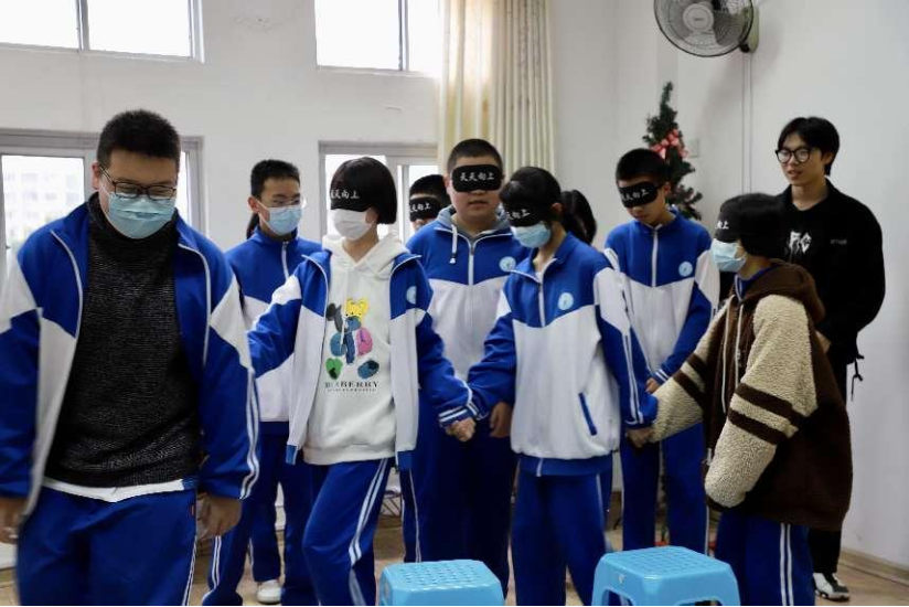 第二期活动,学员们以“盲人”和“拐杖”的身份分别体验穿越障碍,在“一起扭扭”活动中,将制作的小手工和祝福送给自己的好朋友,互赠温暖。