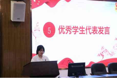 优秀学生代表林雅雯同学和陈滢西同学先后进行发言。她们回顾百年历史,号召学院青年要时刻牢记殷殷嘱托,要始终把个人奋斗的目标与国家发展的蓝图紧密结合起来,紧跟时代步伐,自觉将自己的成才梦与中华民族伟大复兴梦相结合,学会担当时代责任,做青春的圆梦人。
