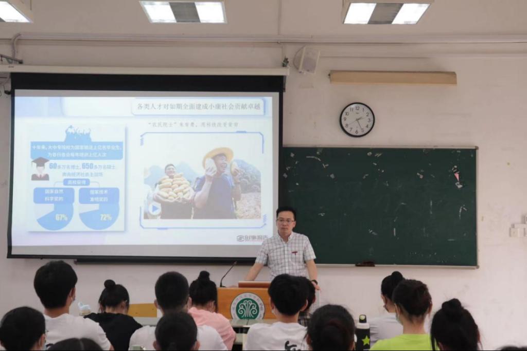 5月14日,学前教育学院党委副书记王海波以《聚天下英才,筑强国之基》为主题给22级学前教育3班学生讲授了一堂主题鲜明、内涵丰富的形势与政策课。