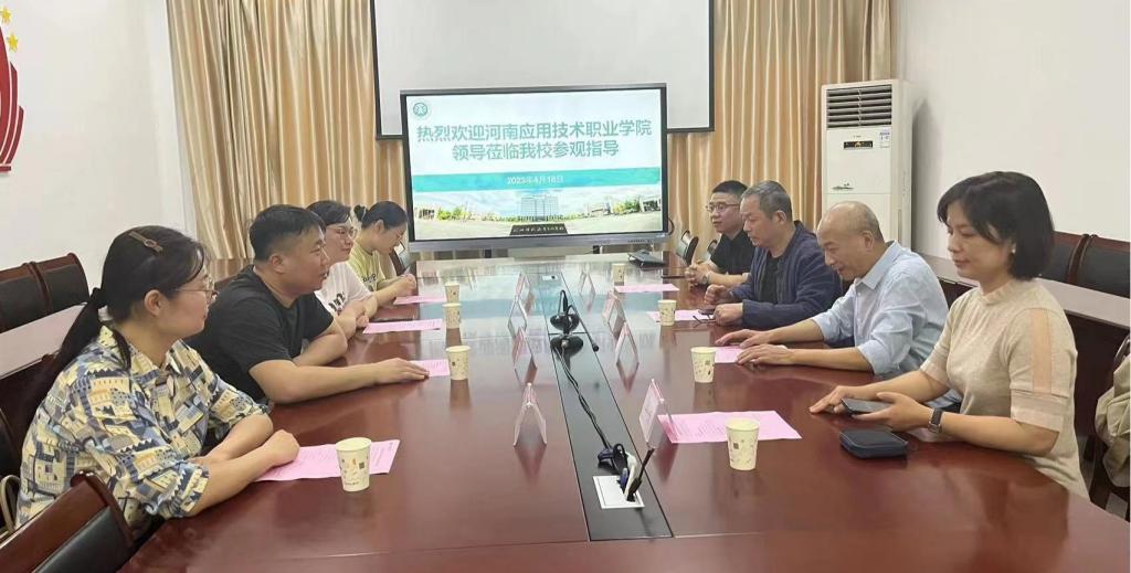 王雷介绍了河南应用技术职业学院发展建设的情况和此次来访交流的目的,并就专业建设、教学、科研、招生就业等工作进行了分享交流。