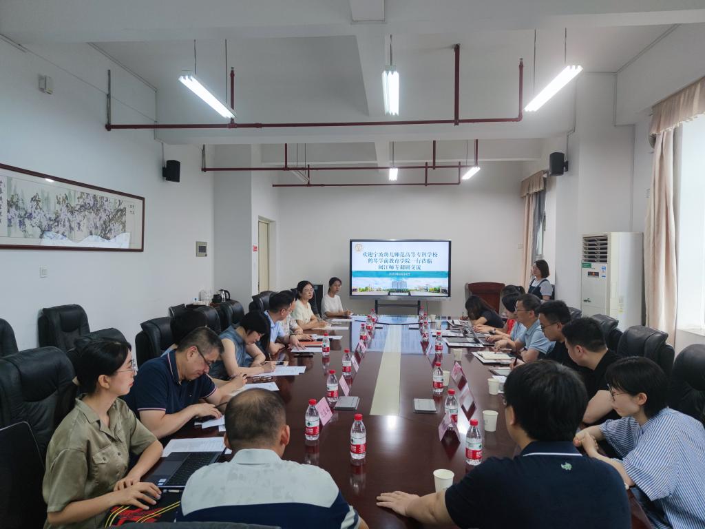 6月14日下午,宁波幼儿师范高等专科学校鹤琴学前教育学院常务副院长郑庆文一行来我学前教育学院开展调研活动。学前教育学院(福州幼教集团)党委副书记(主持工作)王海波、院长林毓君等学院领导相关教师参加会议。