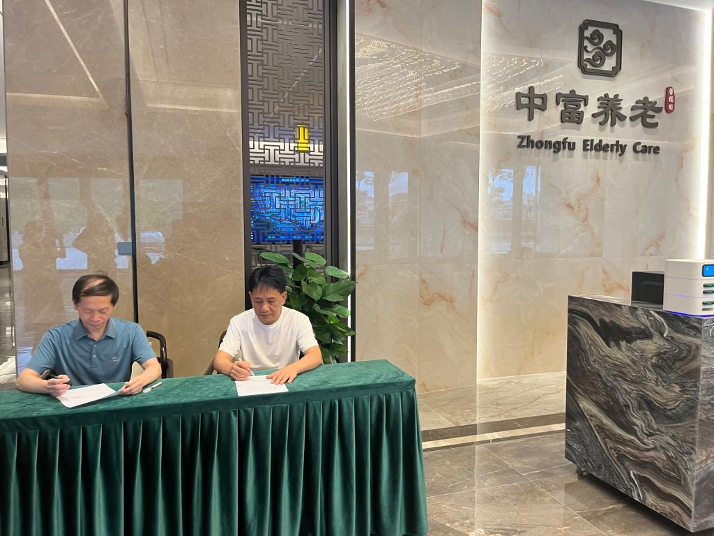 为推动区域康养产业高质量发展,提高康养人才培养质量,7月27日,医护学院副院长吴国宝与中富养老吴传忠总经理携手于福清市静馨嘉园签署《康养职业教育集团联盟合作协议》。双方就深化合作达成共识,秉承“深度互信、平等互利、优势互补、合作共赢”的共享原则,整合双方优势资源,进一步探索、完善康养集团治理体系和运行机制,深入探讨校企产学研合作模式及方式。