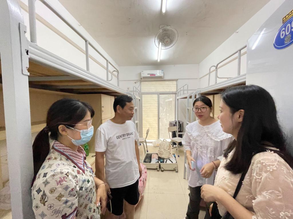 学院党总支副书记陈锦香带领22级辅导员和全体班导师走进宿舍,为同学们送上慰问与关心。在走访过程中,辅导员们针对学生的心理和生活情况给予了专业的指导;班导师们在学生的日常学习和课程安排方面,提供了建设性的意见。