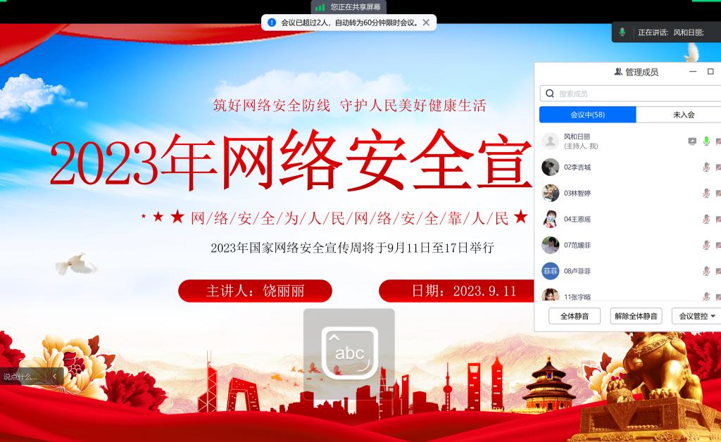 为深入学习贯彻网络强国的重要思想,配合2023年国家以“网络安全为人民,网络安全靠人民”为主题的网络安全宣传周的相关要求。9月10日晚,医护学院组织在校班级和实习班级分别通过线下、线上途径开展2023年“国家网络安全宣传周”主题班会活动。