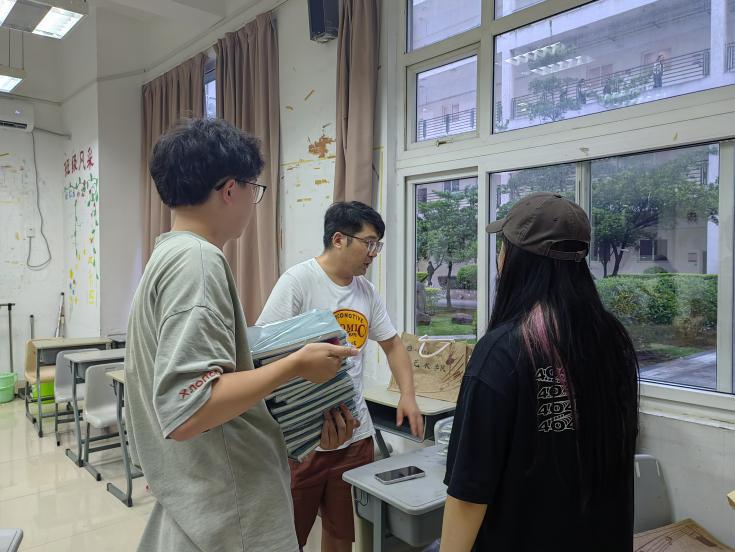 在学院团委书记周宇航的带领下,辅导员老师们与助导学长学姐们提前一天开始了迎新场地和教室的布置工作,搬来作品、摆上画架、拼好桌子、铺上桌布、吹好气球、写上欢迎辞,卯足干劲完成好任务,努力不遗漏任何一个细节,直到准备完毕。