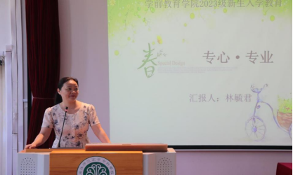为帮助2023级新生涵养良好的行为品格,增强学生对学前教育专业的理解,9月20日,学前教育学院开展“‘职’点迷津,筑梦同行”新生专业思想教育。学前教育学院院长林毓君老师、副院长陈闽光老师、副院长王丹丹老师主讲,全体新生参与。
