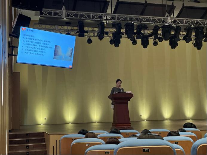 张琦榕在“安全知识教育”模块中给同学们进行了防盗和防骗安全教育,不仅介绍了盗窃的几种形式和常见的骗术让同学们提高警惕,还结合大学生“校园贷”等热门案例,细致地为同学们讲解如何防范自己的人身安全,包括交通安全、防火须知等问题,教导同学们要提高警惕,防范于未然。