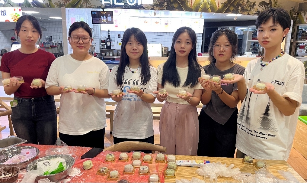 指导老师详细讲解了月饼的制作过程,并为大家准备好制作月饼的材料。学生党员与少数民族学生们将热水倒入冰皮月饼预拌粉中,揉搓面团至成型。随后历经捏团、放馅料、搓圆、模具压制等一道道工序,一个个精美的冰皮月饼制作而成。大家品尝着以“情”为皮、以“爱”为馅的月饼,感受着中华民族传统节日的魅力,拉进了师生、学生之间的距离。