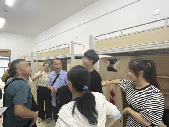 10月8日下午,院领导李扬新、吕志达带队前往学生宿舍,了解新生住宿情况,和家长、新生进行沟通交流,了解新生入校感受、住宿情况、就餐体验等,鼓励新生主动融入大学校园生活,勤学善思、明辨笃行,做能吃苦、肯奋斗、有理想、敢担当的新时代好青年。