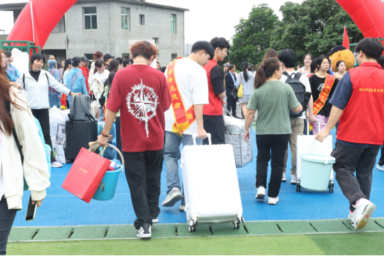 学院领导、老师、学长学姐们,早早地在迎新点集合。微风轻拂,细雨绵绵,闽师专的校园里,智能制造学院的老师同学们忙碌的身影,只为迎接新同学的到来。“同学,往这边走!”“同学,行李给我吧!”......志愿者们热情地帮助新生搬运行李、办理入学手续、入住宿舍,让新同学在初入校园即感受到了学院的温暖。