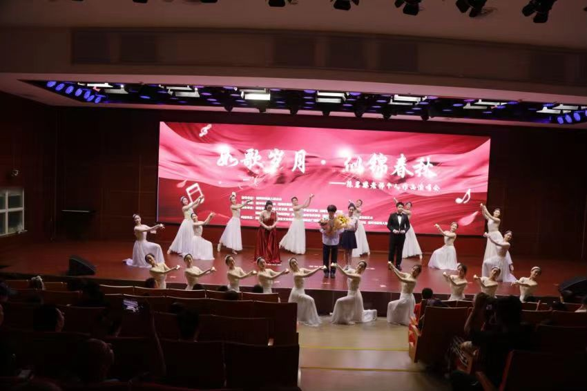演唱会现场,福建师大音乐学院、福建艺术职业学院、福建幼儿师范高等专科学校等单位的志愿者用歌伴舞、合唱等形式演绎了君恩老师的音乐作品,让观众们沉浸在君恩老师音乐的海洋中。演唱会尾声,我校艺术学院的师生们别出心裁送上了一份惊喜,谢军、王刚两位老师与20名舞蹈专业学生精彩演绎了歌曲《如歌岁月 锦绣春秋》,动听的歌声、优美的舞姿、真挚的情感感动了君恩老师,也震撼了全场,使演唱会达到了高潮,更展示了闽师人和艺术学院的风采。