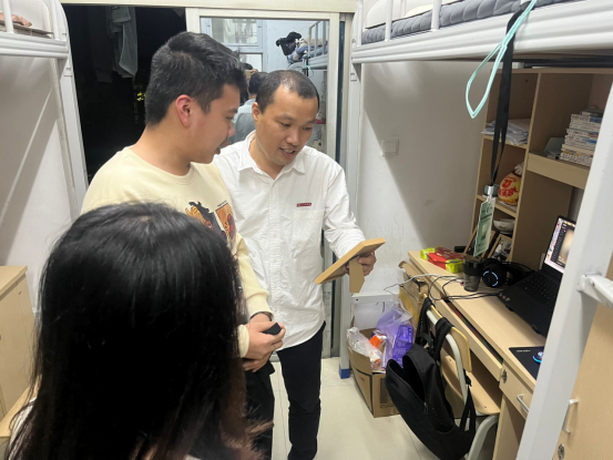每到一间宿舍,吕志达都查看了解学生住宿学习生活情况,与学生面对面沟通、心与心交流,引导住宿学生坚定理想信念,锚定学业目标,制定成长规划,自觉养成良好的学习生活习惯。