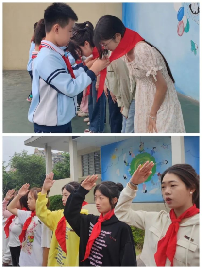 一早,师范生来到操场,与金港湾实验学校小学部的全体师生一同举行隆重的升旗仪式。