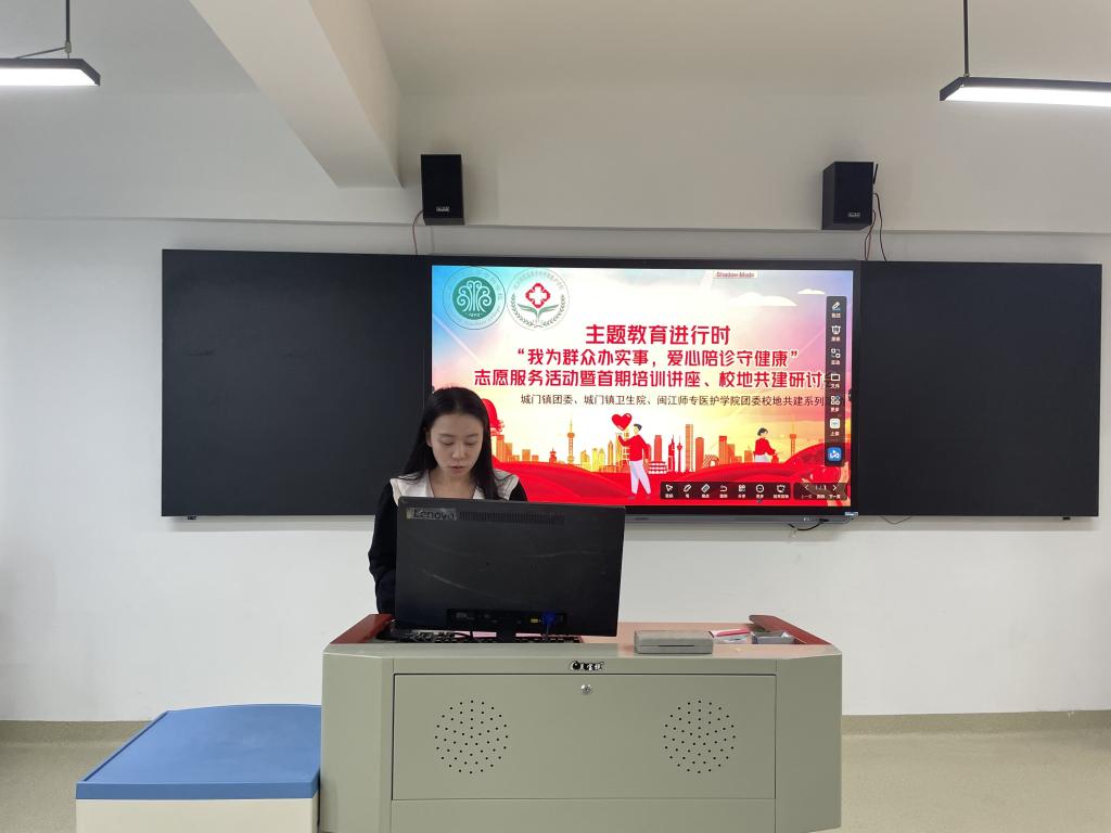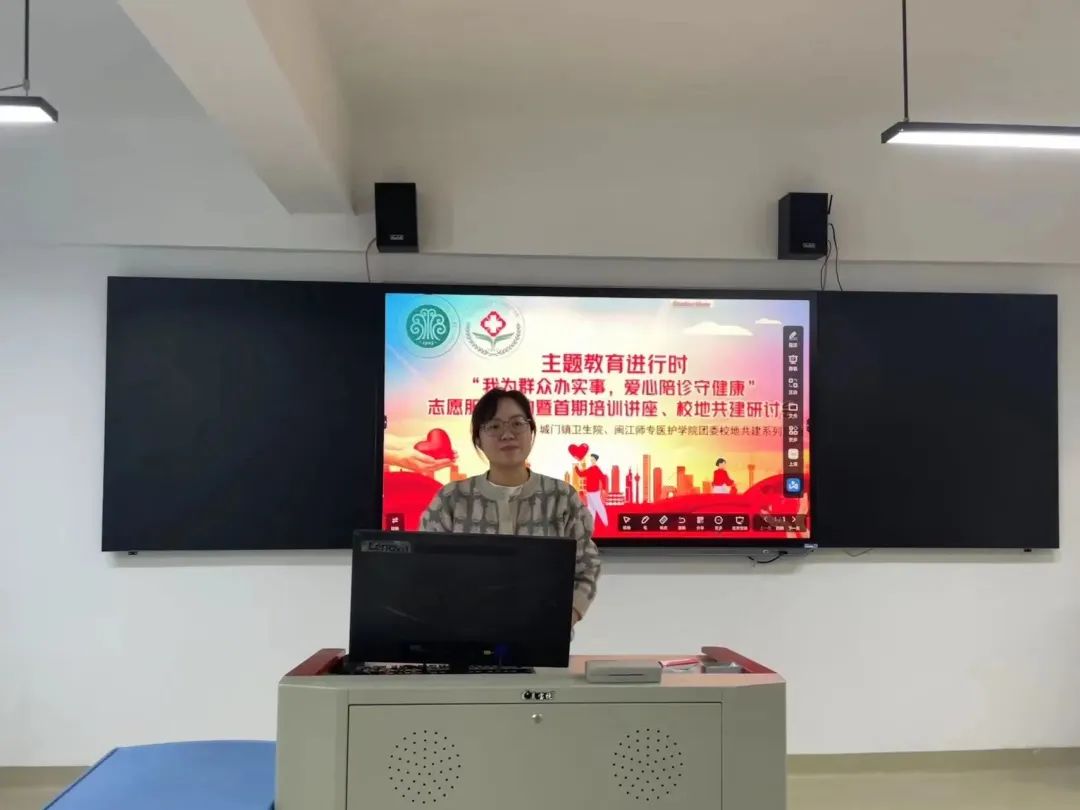 为推动主题教育走深走实,并将学习成果转化为推动发展、服务民生的新成效,11月22日下午,医护学院在仓山校区1号楼704多功能会议室举办“我为群众办实事,爱心陪诊守健康”志愿服务活动暨首期培训讲座、校地共建研讨会。城门镇团委书记张歆歆、城门镇卫生院副院长黄恩奇、公共卫生科、财务科相关医生以及医护学院团委书记许璐颖及志愿者们共同参与了此次活动。