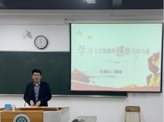 为全面贯彻党的教育方针,落实立德树人根本任务,11月15日,化学与生物技术学院院长陈宗保在仓山校区4-303教室为2023级食品药品监督管理2班全体同学开展以“学习方志敏精神,感悟信仰力量”为主题的《形势与政策》课。