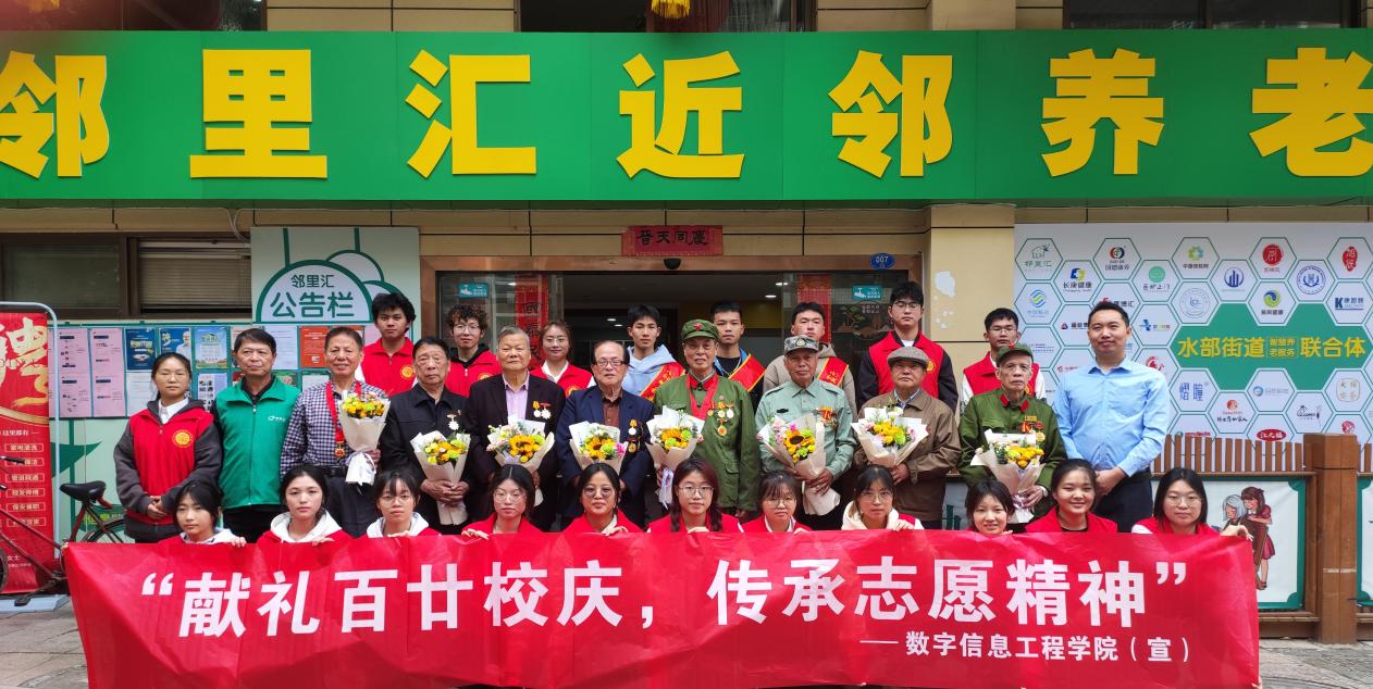 为深入学习贯彻党的二十大精神,献礼120周年校庆,传承志愿服务精神,11月29日上午,数字信息工程学院组织学生党员、入党积极分子及学生干部组成青年志愿服务队,前往邻里汇近邻养老社区探望慰问老兵。