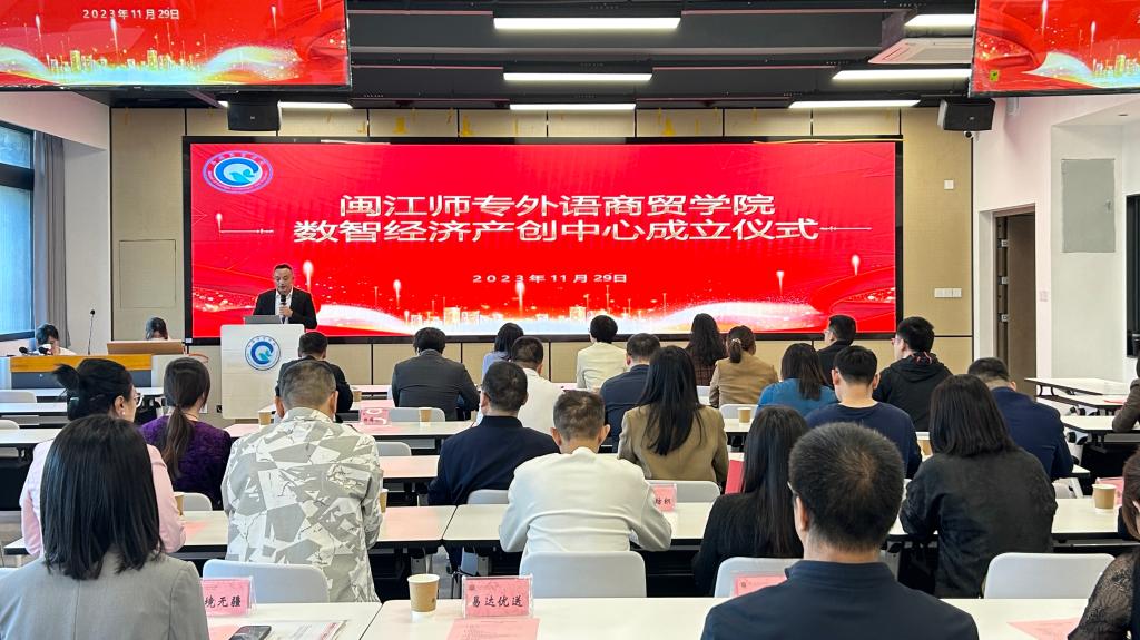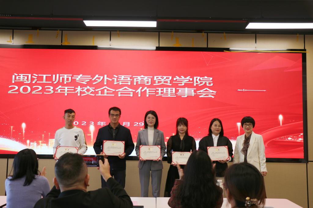 会议的第二阶段,闽江师范高等专科学校外语商贸学院数智经济产创中心成立仪式顺利举行。我院同福建省四海人力资源开发有限公司签订框架协议,成立闽江师专外语商贸学院数智经济产创中心,并为副总裁刘小清颁发常务副主任聘书。刘小清副分享了数智经济产创中心未来的发展计划和目标,希望未来与外语商贸学院深化产教融合、积极探索高质量人才培养模式。