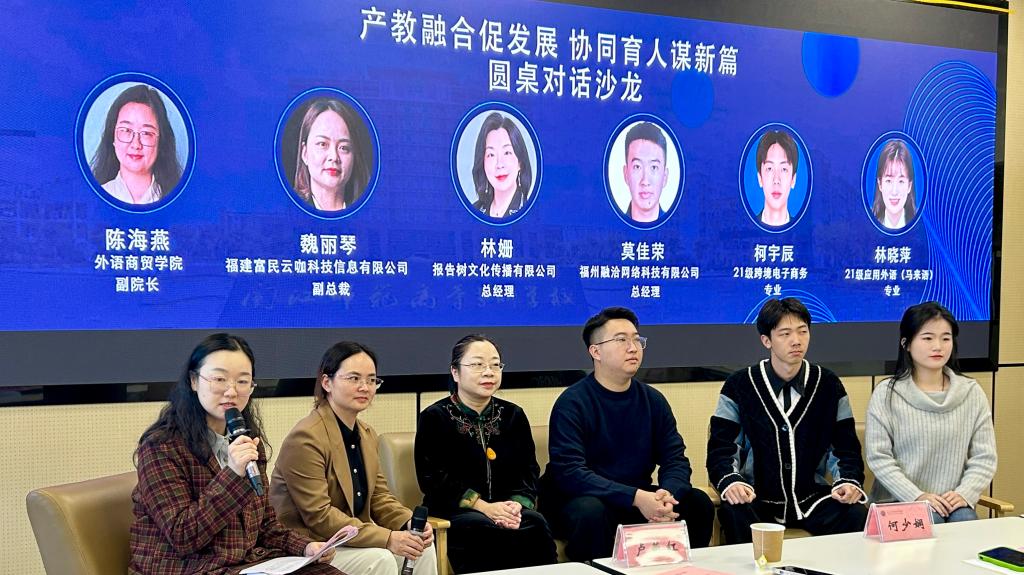 会议的第三阶段是题为“产教融合促发展 协同育人谋新篇”的圆桌对话沙龙环节,邀请到学院、企业、学生代表围绕产教融合专题进行深入讨论和对话。企业嘉宾分享了产教融合实践方面的独特做法,就产教融合的挑战与机遇展开深入讨论;学生代表就自身在校企合作工作室中的所得所思也进行了分享;会上的互动环节中,现场来宾纷纷参与讨论,气氛热烈。与会嘉宾表示要继续深化产教融合,加强校企合作,共同推动外语商贸学院的繁荣发展。