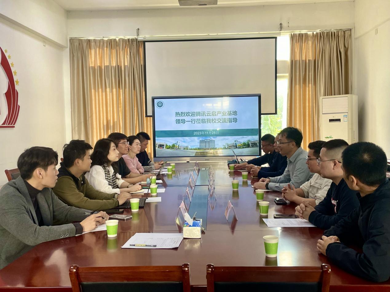 近日,腾讯云启产业基地(全国)总经理王莹、副总经理王磊等一行5人来我校交流。数字信息工程学院院长朱发财、副院长冯光以及相关老师参加本次座谈会。