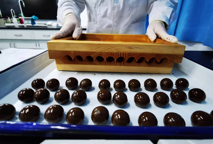 除了古法紫草膏、中药香囊外,22级中药学专业、22级药学专业、23级中药学专业、23级药学专业7个班级近400名同学在团队指导老师的指导下制作了各种特色中药产品:22级药学1班陈丽鑫、22中药学1班林心晨领队制作了八珍丸、逍遥丸等,连续磨粉、筛粉,最后搓成制丸,体验传统大蜜丸制备的艰辛并培养持之以恒的耐心与毅力;22级中药学1班肖飞雅领队制作了二冬加味膏,数小时煎煮、浓缩收膏,亲身感受“修合无人见、存心有天知”的古训内涵并培养精益求精的工匠精神。