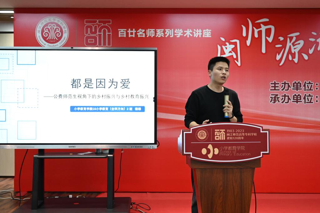 百廿闽师,弘文励教,情系山海。为庆祝建校120周年,12月10日下午,由小学教育学院承办的“闽师源流:师范教育助力乡村振兴”校友讲坛在小学教育公共实训基地鳌峰书院举办。小学教育学院师生与历届校友共130余人参加了活动。