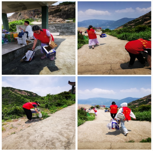 活动中老师们以一往无前的奋斗姿态勇攀旗冠顶1899级台阶,迎难而上显韧劲,互帮互助共登顶,在旗冠顶俯瞰整个渔村和宛如一座“海上牧场”的成片渔排,身临其境感受乡村振兴的丰硕成果,进一步坚定为师生服务、为国家发展奉献自己力量的决心。在登顶的过程中,党员同志发挥先进性,开展“拾捡垃圾、守护环境”志愿活动,沿途清理道路上的矿泉水瓶、塑料袋等垃圾,还青山干净整洁。