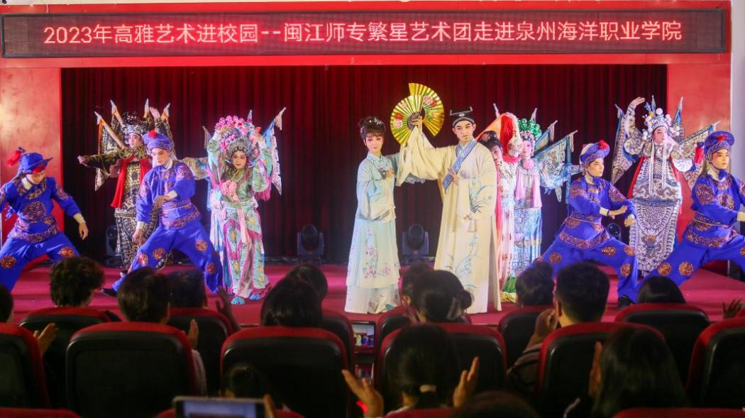 为深入学习贯彻党的二十大精神和党的教育方针,进一步加强和改进学校美育工作,提高学生审美和人文素养。由福建省教育厅、福建省文旅厅联合主办、闽江师范高等专科学校承办的高雅艺术进校园活动于11月6日正式启动。艺术学院院长徐青、副院长林理杰带领我校繁星艺术团分赴泉州海洋职业学院、福建经贸学校、泉州轻工职业学院、厦门华天涉外职业技术学院、福建经济学校等中高职院校开展专场演出,校党委副书记林旻、副校长陈强莅临现场观看指导。线上线下近两万余名师生观众观看了演出。