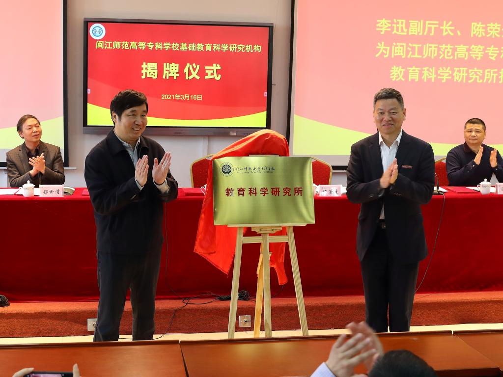 李迅副厅长、闽江师专书记陈荣生为闽江师专教育科学研究所揭牌
