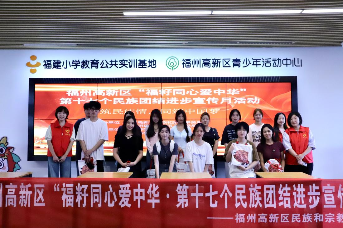 为扎实开展民族团结进步宣传教育工作,9月25日,我校与福州高新区民宗局、团工委在旗山校区共同开展“福籽同心爱中华·第十七个民族团结进步宣传月——共筑民族情,同筑中国梦”活动。各民族学生代表参加。