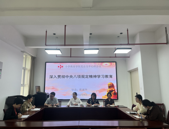 4月9日,小学教育学院党总支在闽江师专旗山校区综合楼七楼第二会议室召开4月理论学习中心组(扩大)学习会,深入学习中央八项规定精神。会议由党总支书记陈淑华主持,中心组全体成员参加了会议,小学教育学院副院长练怡、学生支部书记吴文洁、教育教研室副主任邵伊雯列席会议。