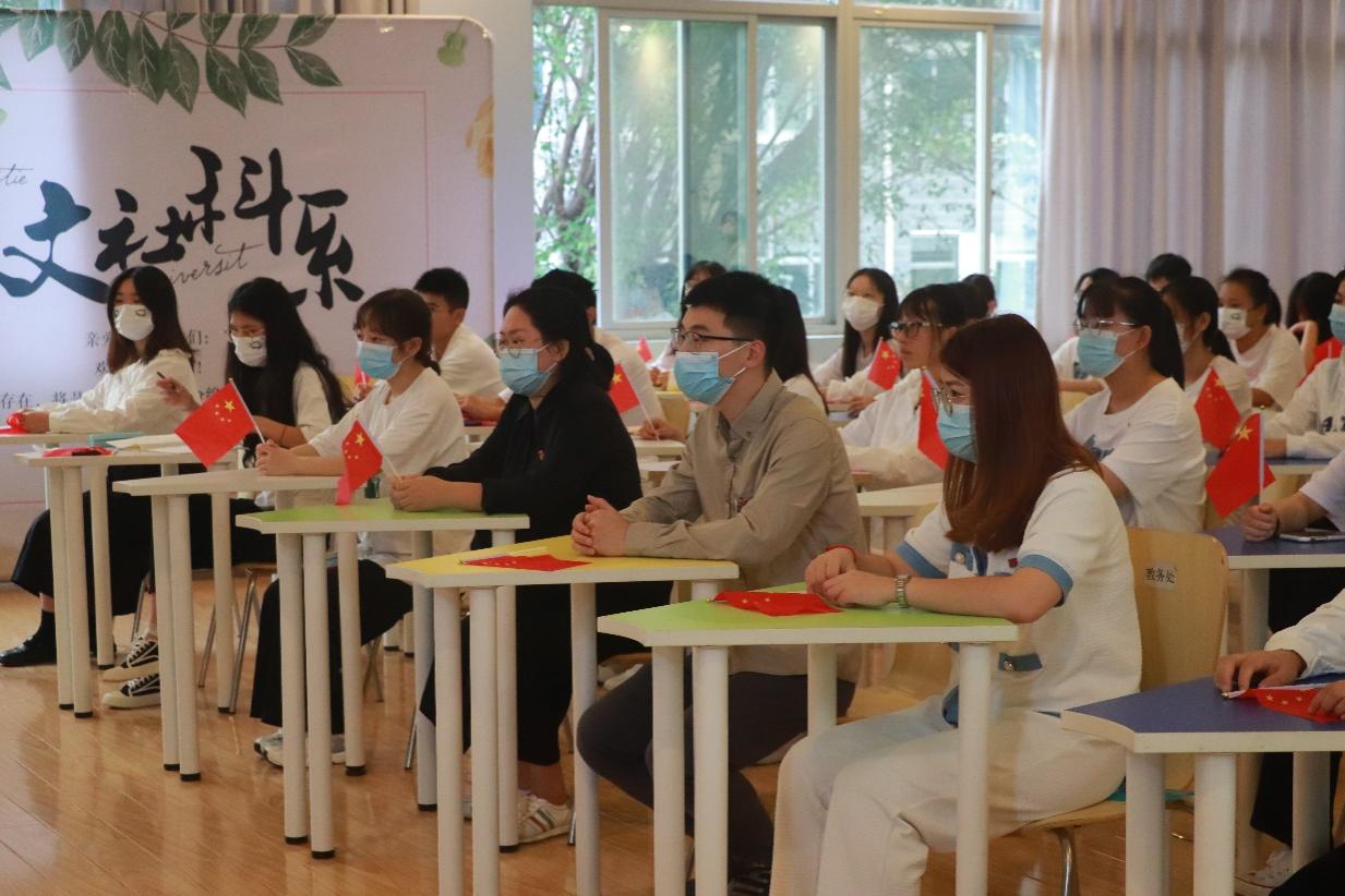 师生们手举国旗,认真聆听、学习习近平总书记代表第十九届中央委员会向大会作的报告。报告结束后,人文学子表示这次活动是一个很好的契机,让大家在第一时间了解到二十大的相关信息,也能更直接感受到党和国家的发展,以及新时代青年身上肩负的时代重任。