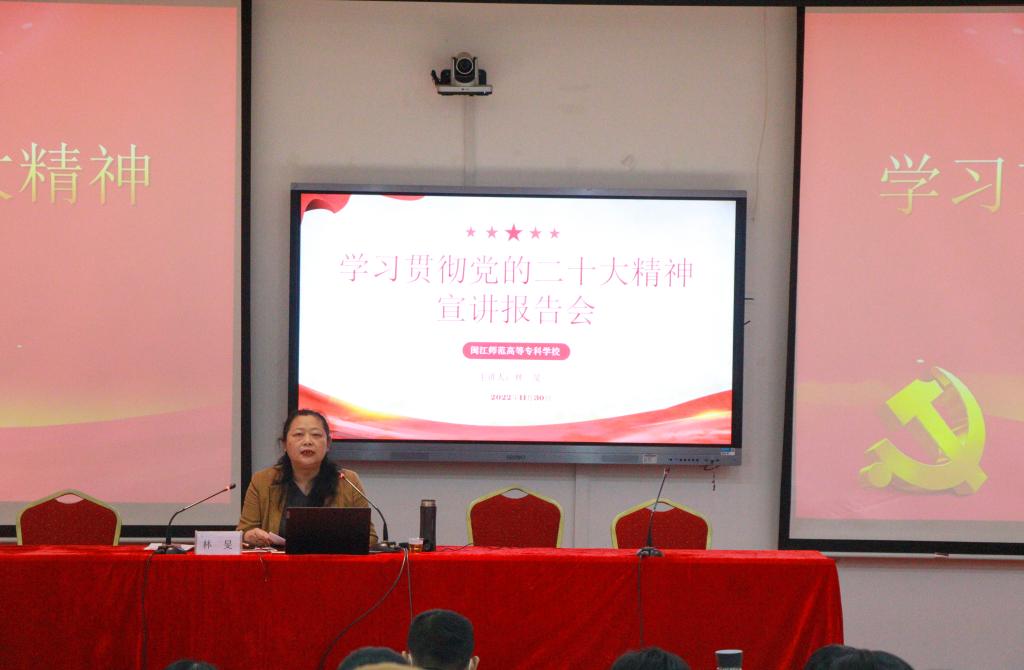 校党委副书记林旻为小学教育学院、学前教育学院、外语与商贸学院教职工宣讲党的二十大精神