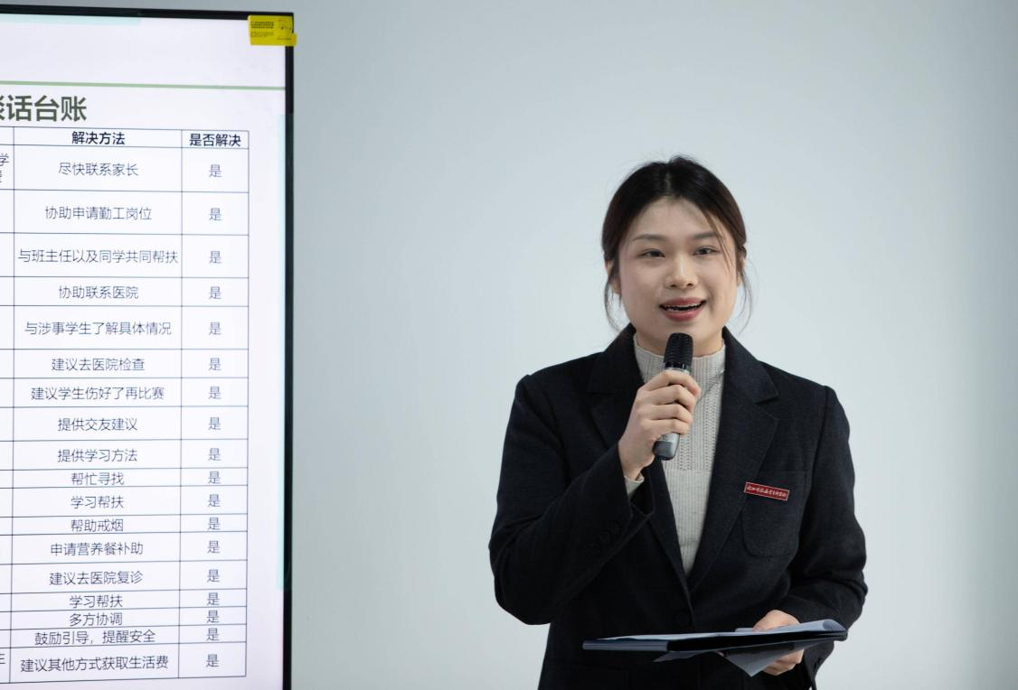 人文与管理学院党总支副书记陈清芬以“用爱传递温暖,用心守护成长”为核心,从一级心理台账中汲取启示,阐述重视学生心理健康的重要意义,详解关注对象的界定与识别方法,并通过具体案例分享关爱举措,致力于打造让学生理解、家长支持、学校放心的心理育人环境。